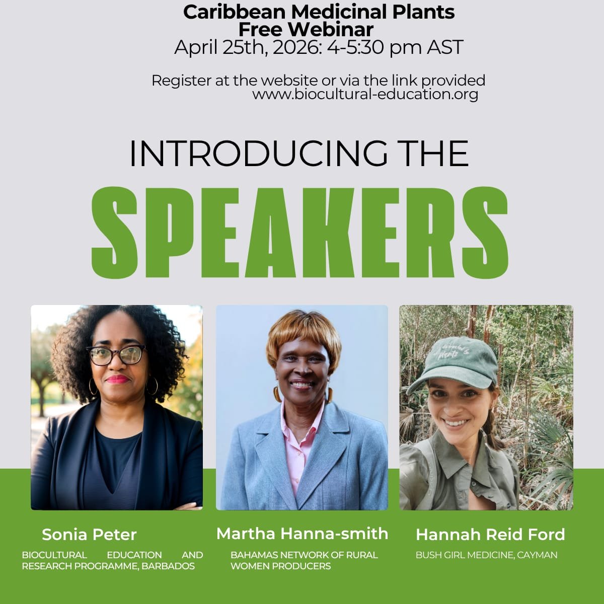 Join us as we discuss thirty plants employed in traditional healing systems across the Caribbean from Barbados, Bahamas and the Cayman Islands. Each presenter brings years of expertise in the field of ethnobotany as practiced across the islands. This heritage knowledge is pluralistic with contributions from our Indigenous Peoples, ancestral tradition from West Africa and other historical inputs from the colonial period.